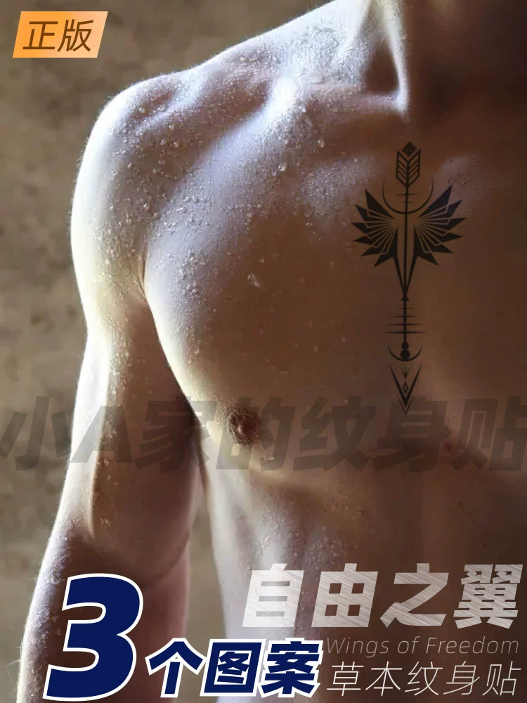 ملصقات وشم عشبية للذراعين والصدر للرجال، سهم عصير شبه دائم على الإنترنت، نمط مقاوم للماء، يدوم طويلاً، مقلد للصدر