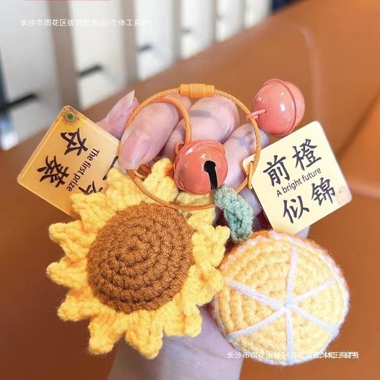 قلادة عباد الشمس الفاخرة تفوز بسلسلة مفاتيح مصنوعة يدويًا من الصوف والكروشيه والبرتقالي وعباد الشمس وفحص القبول في كلية عباد الشمس والحفل المصاحب
