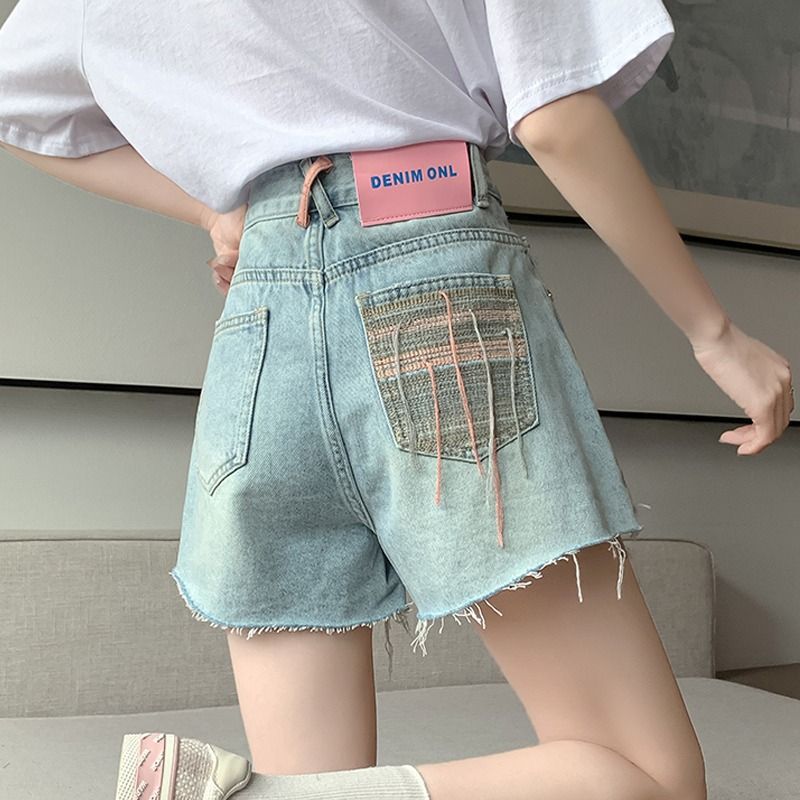 2023 الصيف تصميم الشعور المتخصصة تكدرت الدنيم السراويل النسائية التخسيس صغيرة عالية الخصر ألف خط واسعة الساق السراويل الساخنة