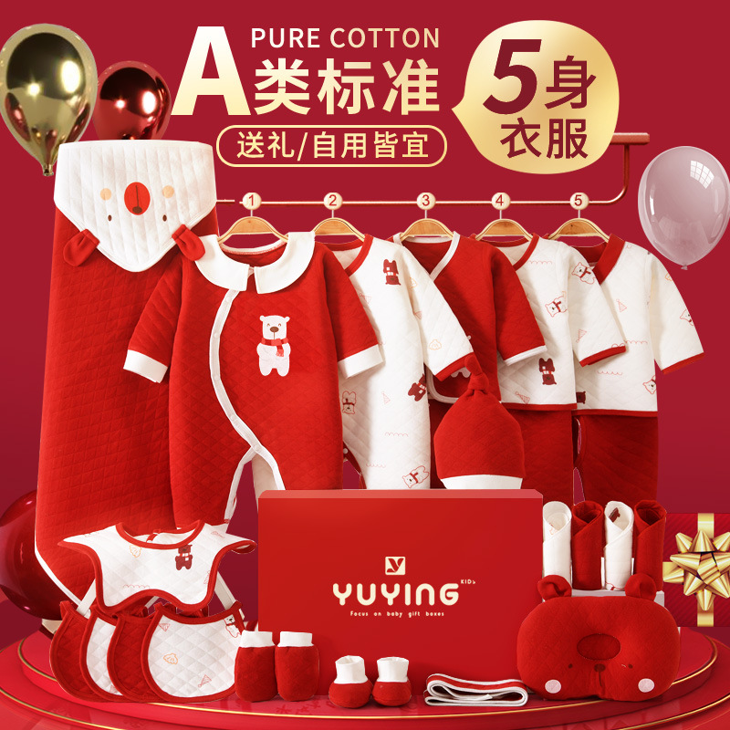 ملابس الأطفال لفصل الخريف والشتاء بدلة رأس السنة لحديثي الولادة صندوق هدايا من القطن الخالص لحديثي الولادة وجه البدر هدية مستلزمات السنة الجديدة