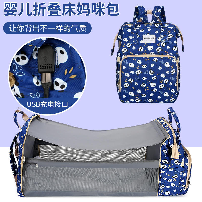 حقيبة مومياء جديدة قابلة للطي لسرير الطفل سعة كبيرة متعددة الوظائف حقيبة محمولة للأم والطفل حقيبة ظهر من قماش أكسفورد