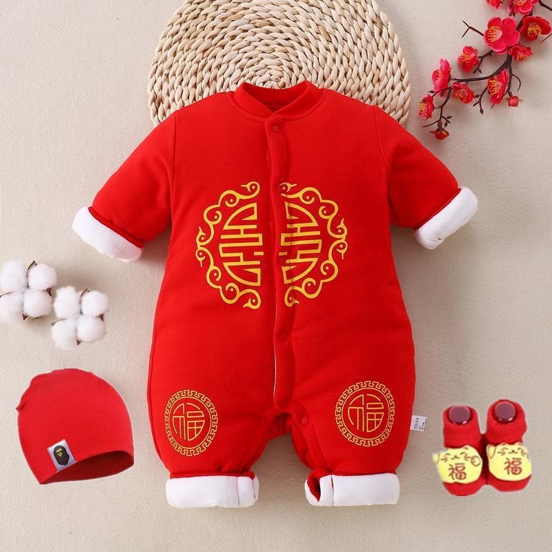 Chinese-style winter baby clothes suit baby thickened winter newborn red conjoined boneless festive children’s clothing