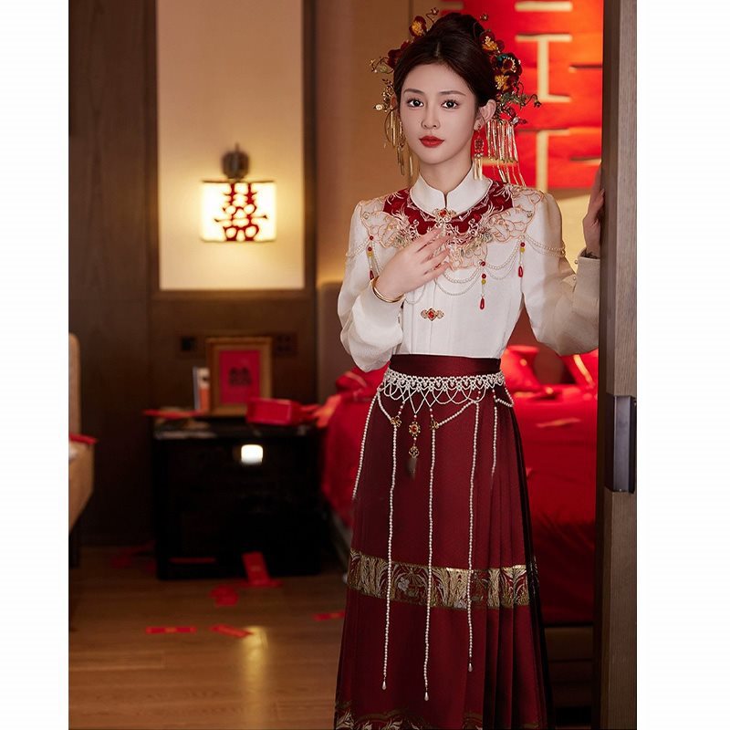 Hanfu ملابس زفاف نسائية ملابس نخب نسج مكياج ذهبي زهرة حصان وجه تنورة بدلة مطرزة سحابة كتف نمط صيني جديد يوميا تحسين Hanfu