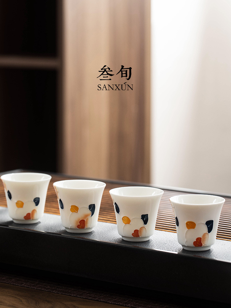 RI0T عبق حديقة فنجان شاي فنجان شاي الخزف الأبيض رسمت باليد ماستر كوب واحد بسيط طقم شاي الكونغ فو السيراميك فنجان شاي صغير