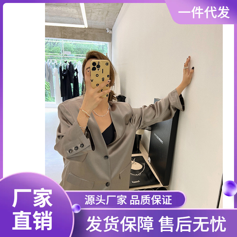 سترة بدلة نسائية بدون ياقة من حمض الأسيتيك، سترة نسائية رفيعة وفضفاضة تناسب الجميع، سترة واقية من الشمس عصرية جديدة للنساء