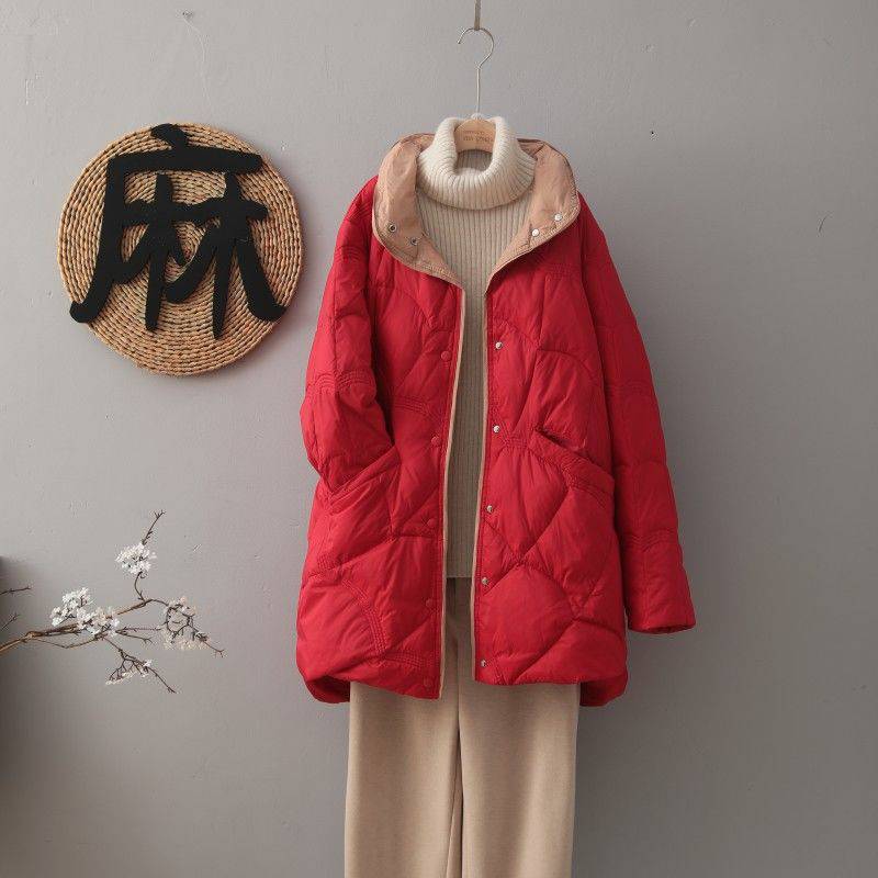 سترة خفيفة الوزن للنساء 2023 جديدة متوسطة الطول فضفاضة بيضاء اللون أسفل معطف رقيق ذو ياقة واقفة بألوان متباينة