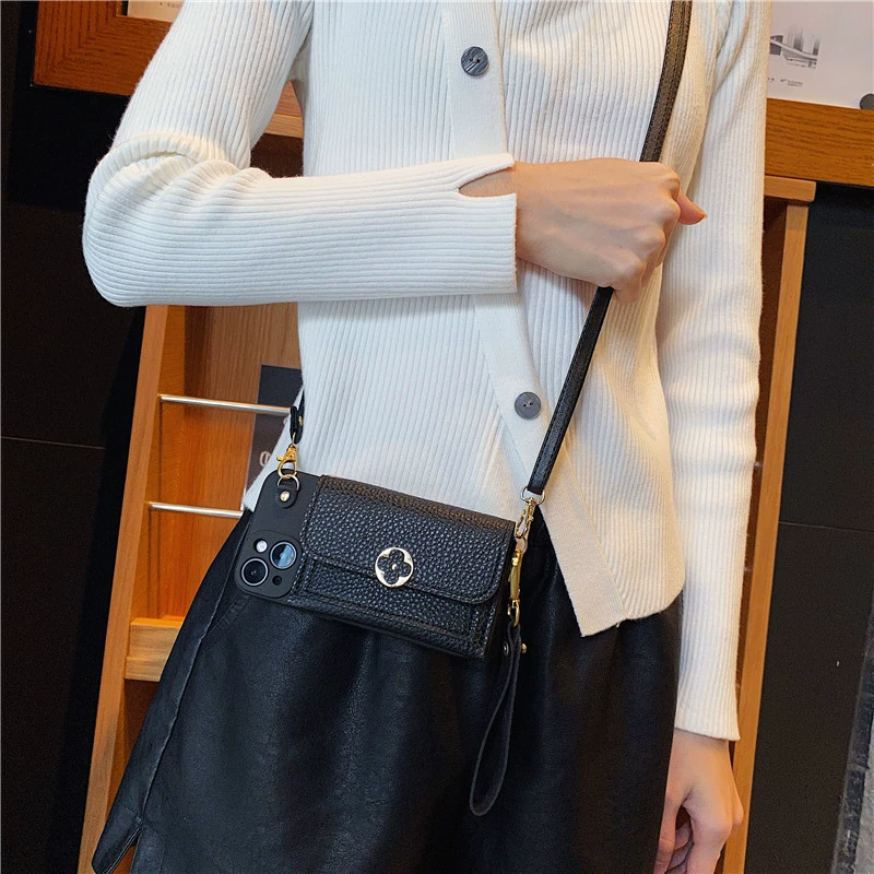 محفظة عملات معدنية مناسبة لحافظة الهاتف المحمول Huawei nova 12 الإصدار النشط 11 بسيط 10 أربع أوراق البرسيم 9se مضاد للسقوط 8Pro غطاء حماية 7 مع حبل ناعم Hi Enjoy 60s crossbody 70 Pro Honor Magic 6