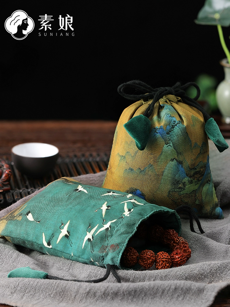 حقيبة تخزين سوار لعبة ثقافية راقية من Su Niang حقيبة مخملية وساعة من خشب الجوز وسوار مجوهرات وحقيبة مجوهرات وجيب برباط