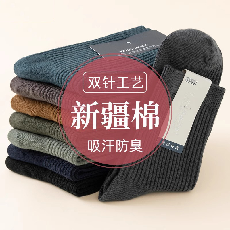 جوارب قطنية بإبرة مزدوجة للرجال مقاومة للرائحة وماصة للعرق للنساء Zhuji الجوارب ربيع الخريف والشتاء قطن بقضيب قابل للتنفس