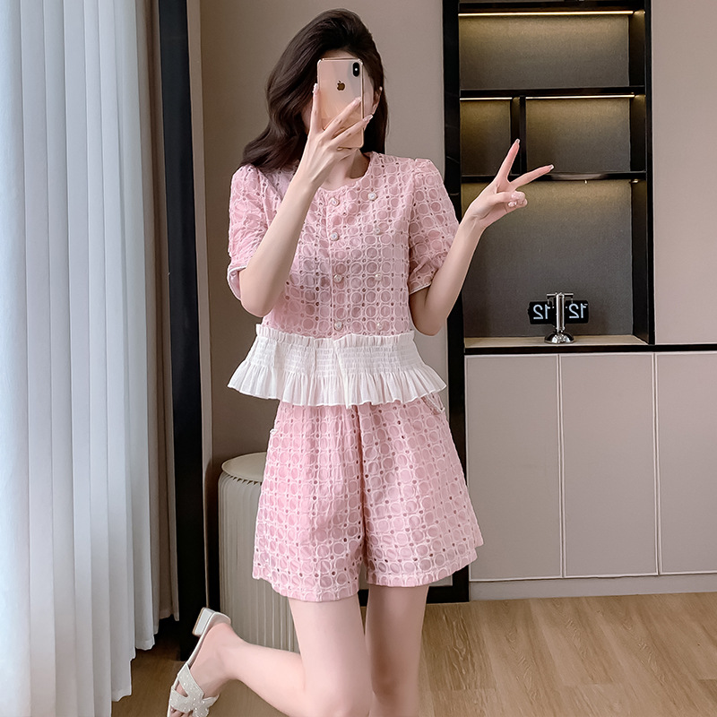 شورت دانتيل ستايل شانيل يناسب المرأة لصيف 2024 موضة جديدة النمط الغربي مع مجموعة من الموضة الطراز الكوري العصري