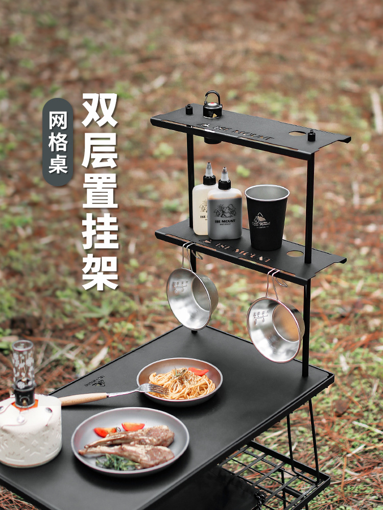 في الهواء الطلق طاولة الشبكة دعم صينية واحدة ومزدوجة الطبقة متعددة الوظائف تخزين الرف سطح المكتب القابل للإزالة دعم الشواء شماعات