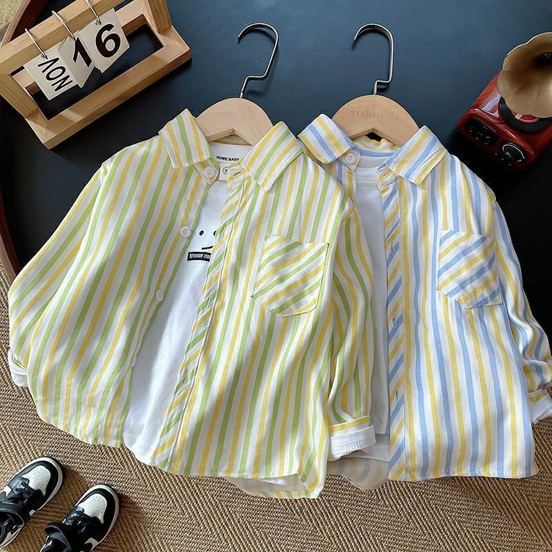 قميص مخطط للأطفال كوري للأولاد للربيع والخريف، قميص أطفال عصري عصري للأطفال، قميص كاجوال عصري للأطفال المتوسطين والكبيرين