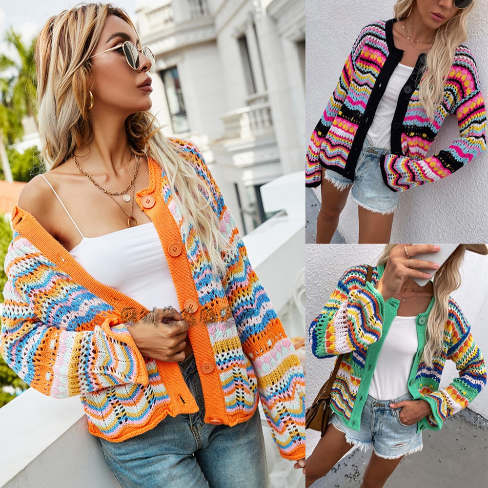 عبر الحدود الخريف والشتاء الأمازون جديد سترة مخططة المرأة فضفاضة التجارة الخارجية قوس قزح سترة عبر الحدود المرأة سترة