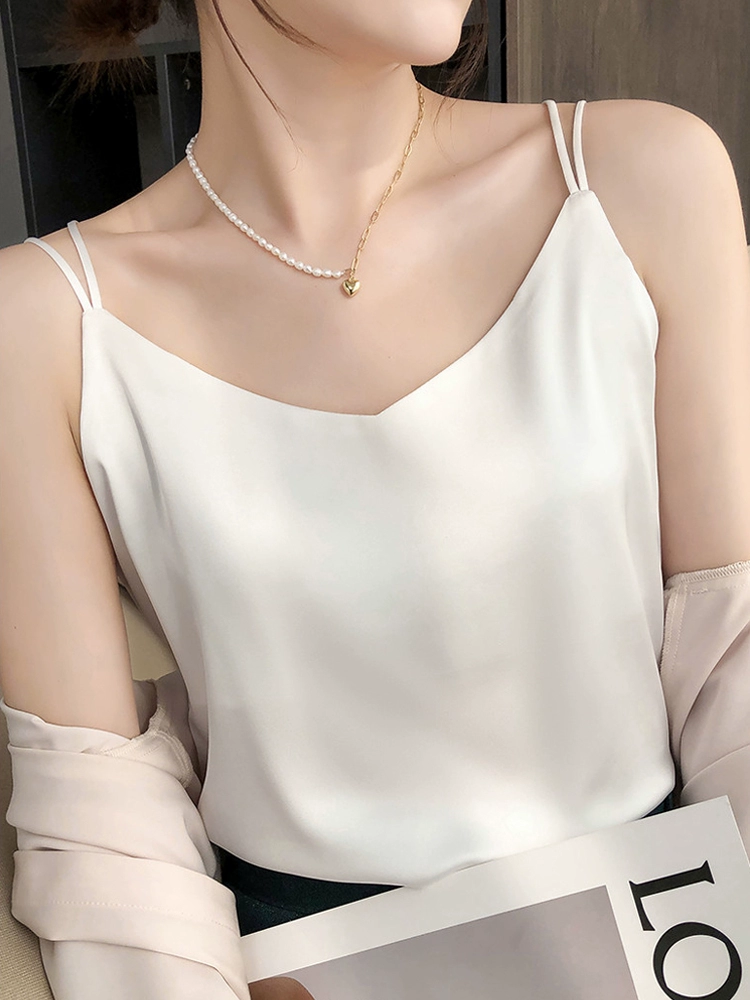 سترة من الحرير أسيتات الساتان للنساء مع الربيع والخريف الجديد أسفل القاع الفضفاضة العليا V- رقبة صغيرة