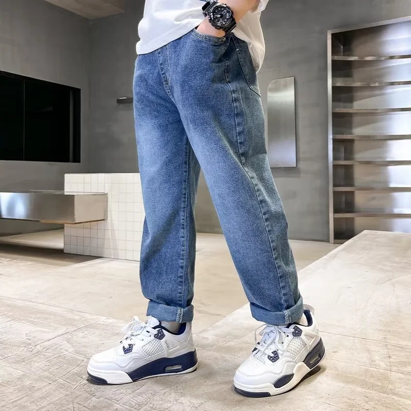 جينز للأولاد 2022 ربيع وخريف جديد سراويل أطفال متوسطة وكبيرة فضفاضة غير رسمية للأولاد وسيم موضة السراويل الطويلة