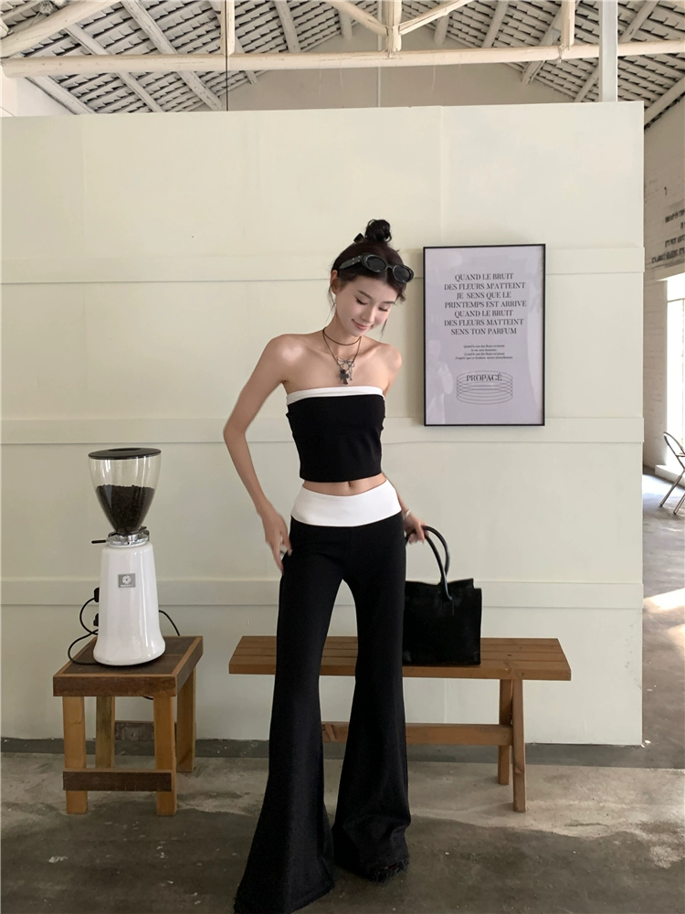سروال Kumikumi النسائي ذو الألوان المتباينة يصل إلى الأرض وقميص علوي