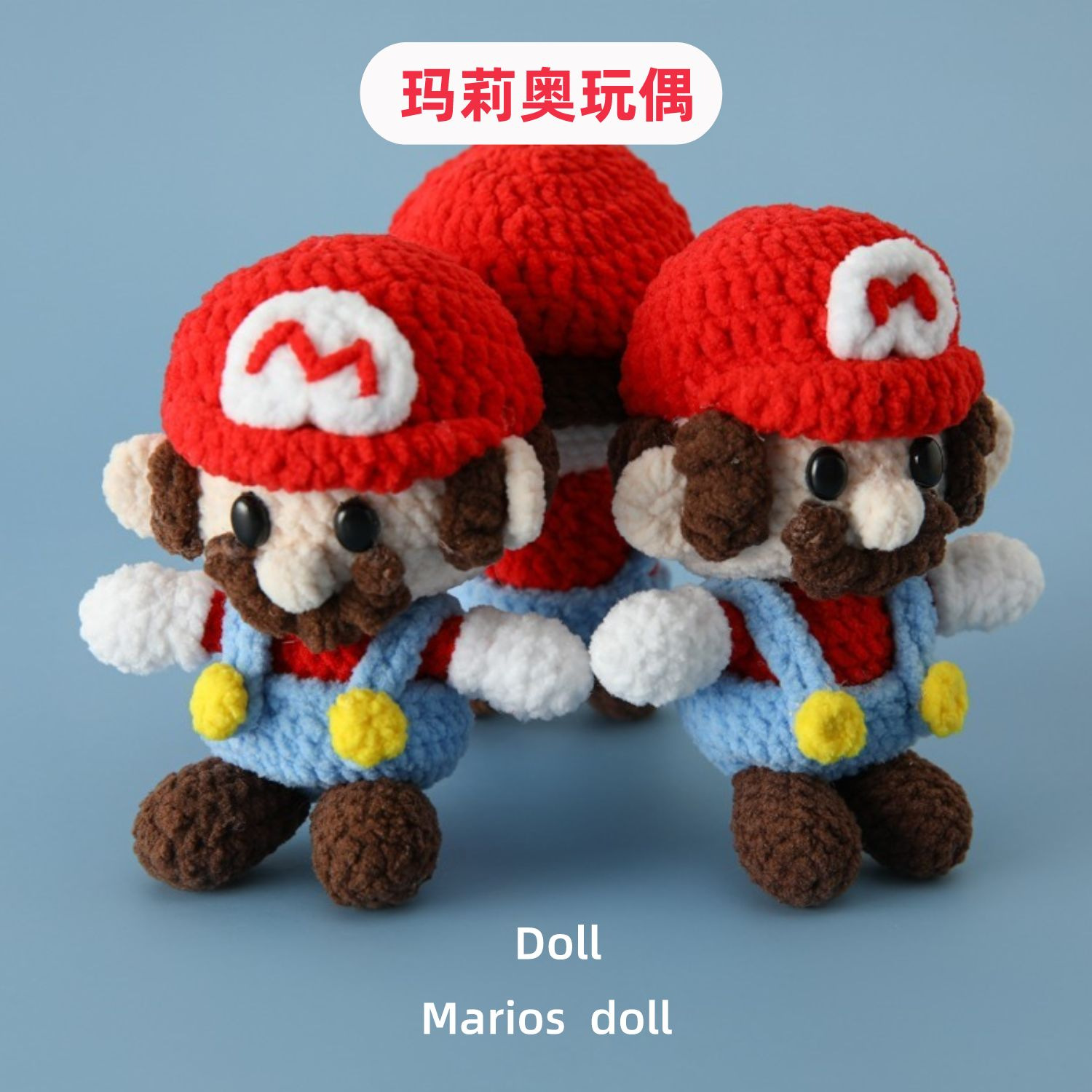 قلادة دمية كروشيه منتج نهائي لطيف على شكل خط آسيوي صغير دمية ماريو دمية ذاكرة الطفولة هدية يدوية للحنين