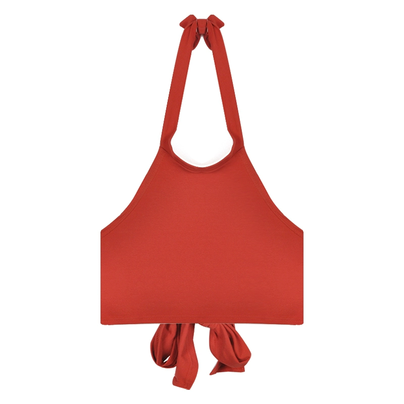 زي شاطئ البحر ذو أشرطة حمراء مع رسن مثير بدون ظهر