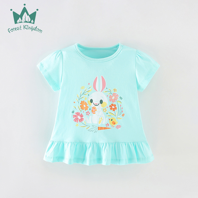 Forestkingdom ماركة 2024 صيف جديد الفتيات قصيرة الأكمام تي شيرت الأطفال النمط الأوروبي والأمريكي الكرتون قميص مطبوع