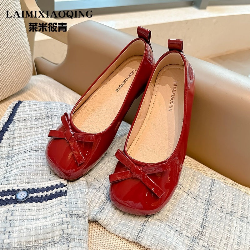 حذاء مسطح ذو فم ضحل أحمر فرنسي مقاس كبير من 41 إلى 43