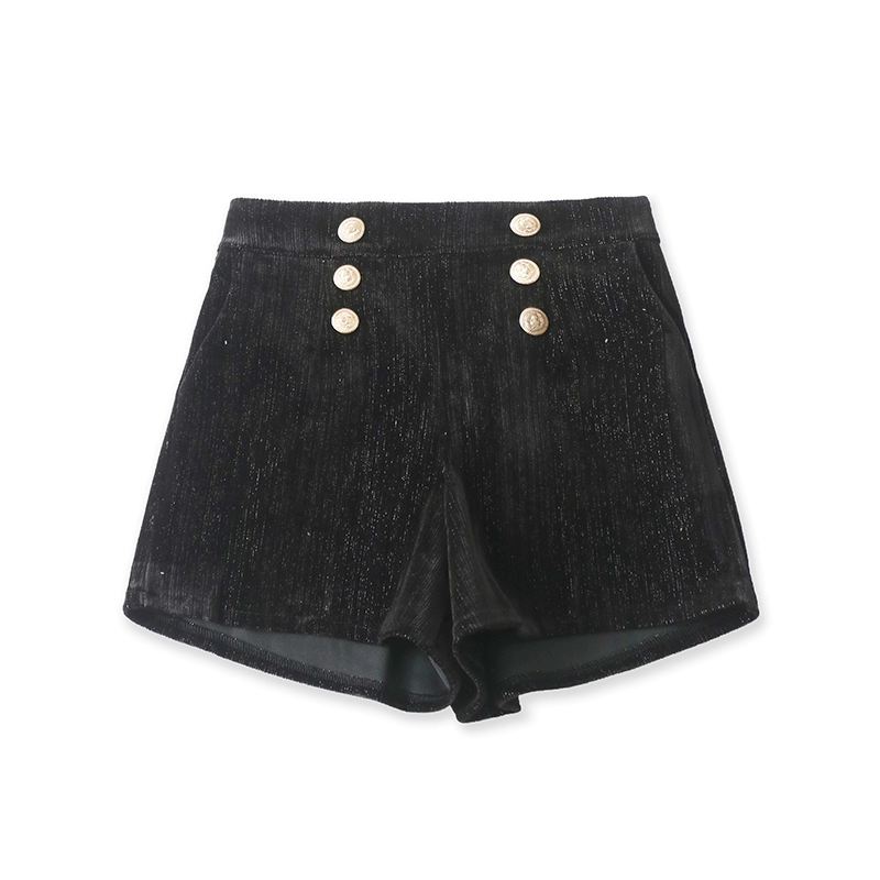 4331 شورت من الحرير الذهبي، خصر عالي شبه مرن، نمط عطري صغير، أرجل واسعة مخملية للتنحيف، سروال نسائي عصري ذيل التجارة الخارجية