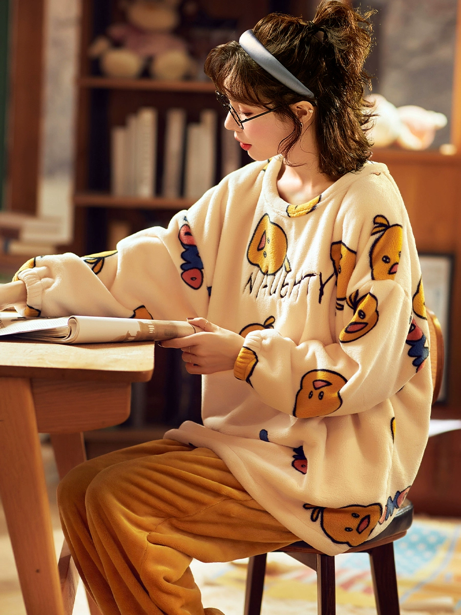 كورال فيلفيت بيجاماس الشتاء للسيدات سميكة بالإضافة إلى تأثيث مخملي بدلات مسطحة 2024 جديدة دافئة النماذج الخريف والشتاء نماذج الشتاء