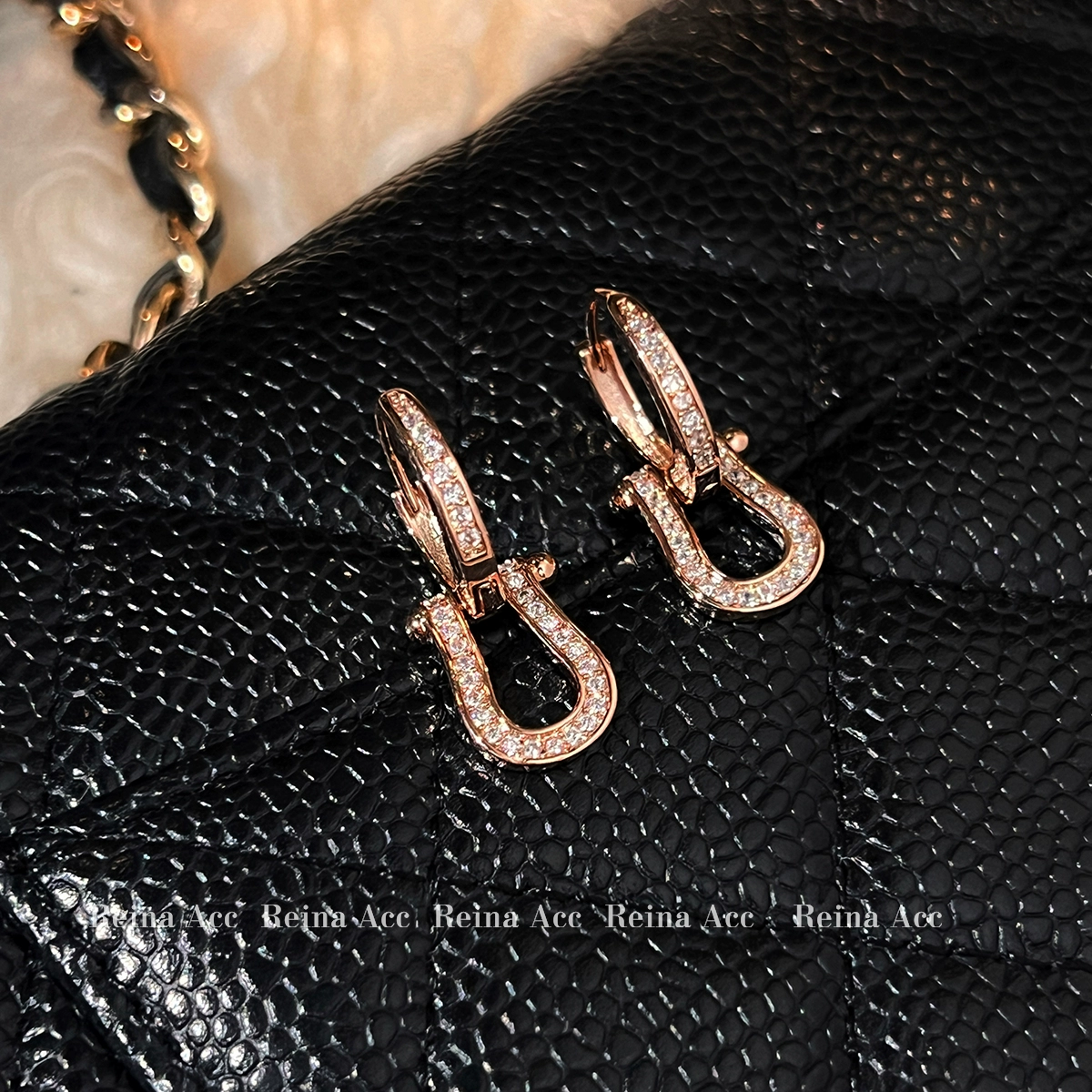أقراط نسائية فاخرة بإبزيم على شكل حدوة حصان من الزركون