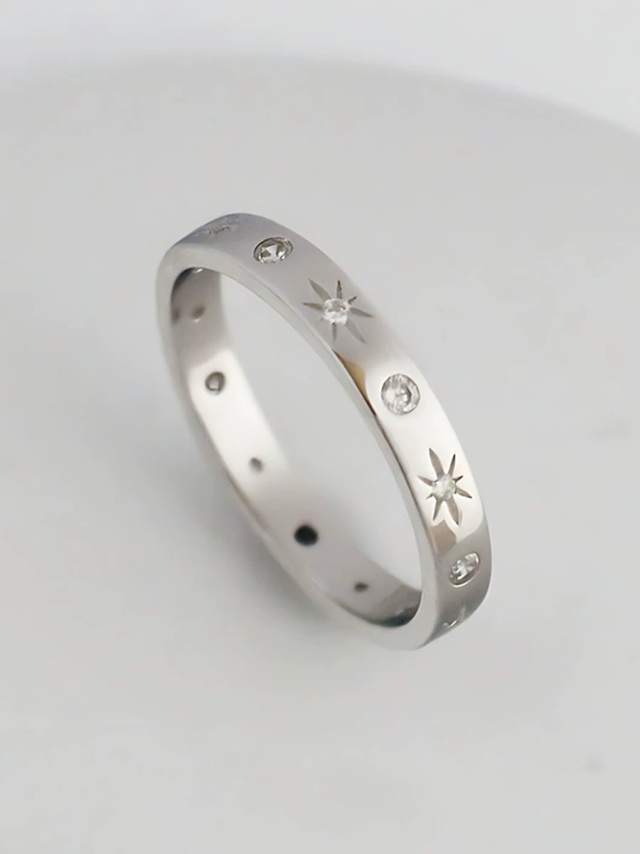 Sterling Silver Stars اللامع حلقة أزياء شخصية الزركون الزركون