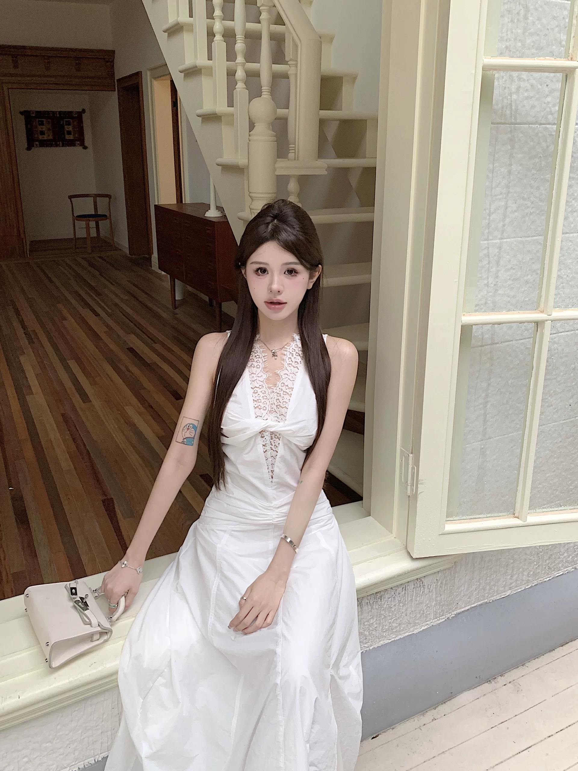 فستان صيفي نحيف من الدانتيل وخياطة على شكل حرف A