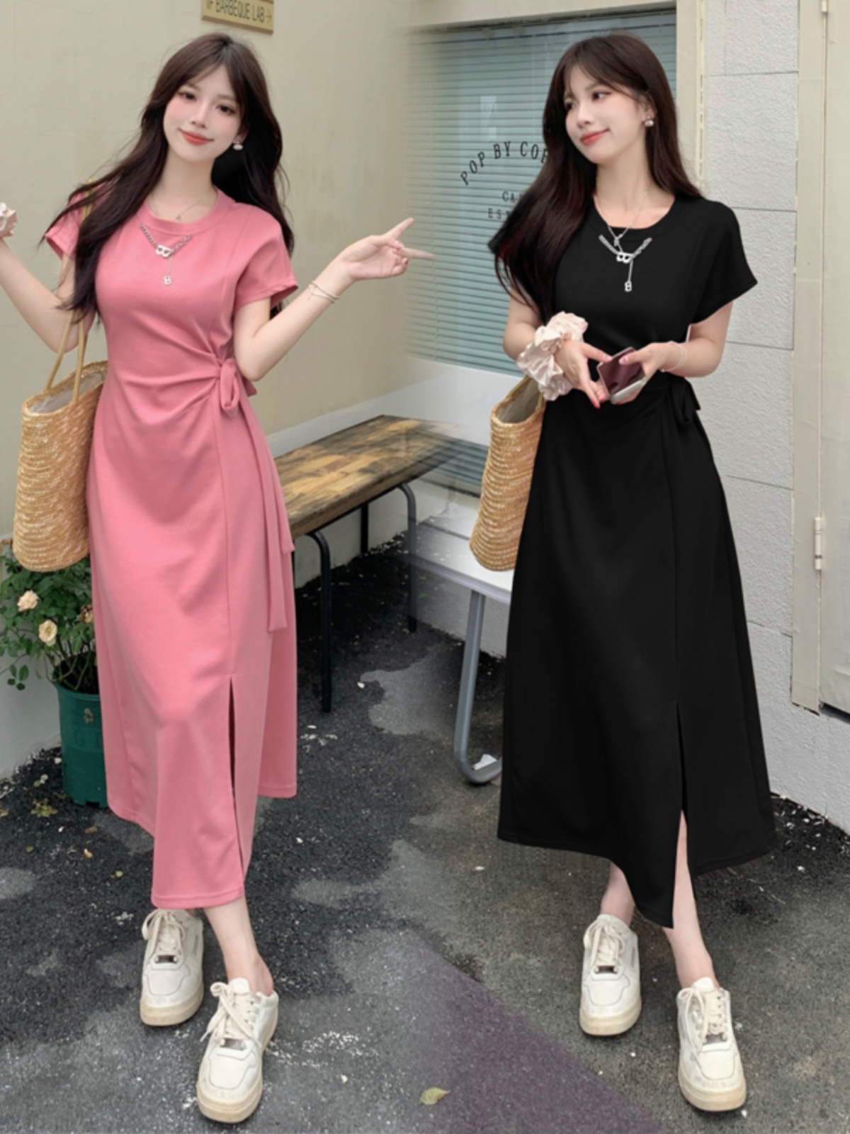 فستان صيفي فاخر خفيف بنمط هيبورن بفتحة MM