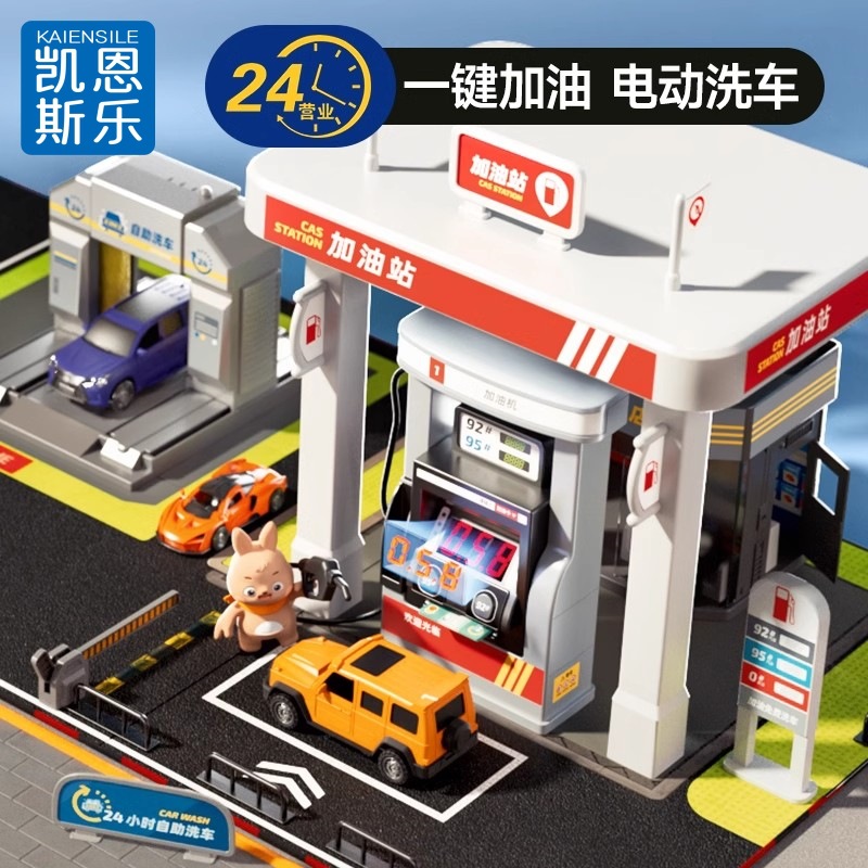 لعبة محطة وقود كبيرة جديدة للأطفال لوقوف السيارات وغسيل السيارات ومحاكاة نموذج المرآب تناسب عمر 3 إلى 9 سنوات