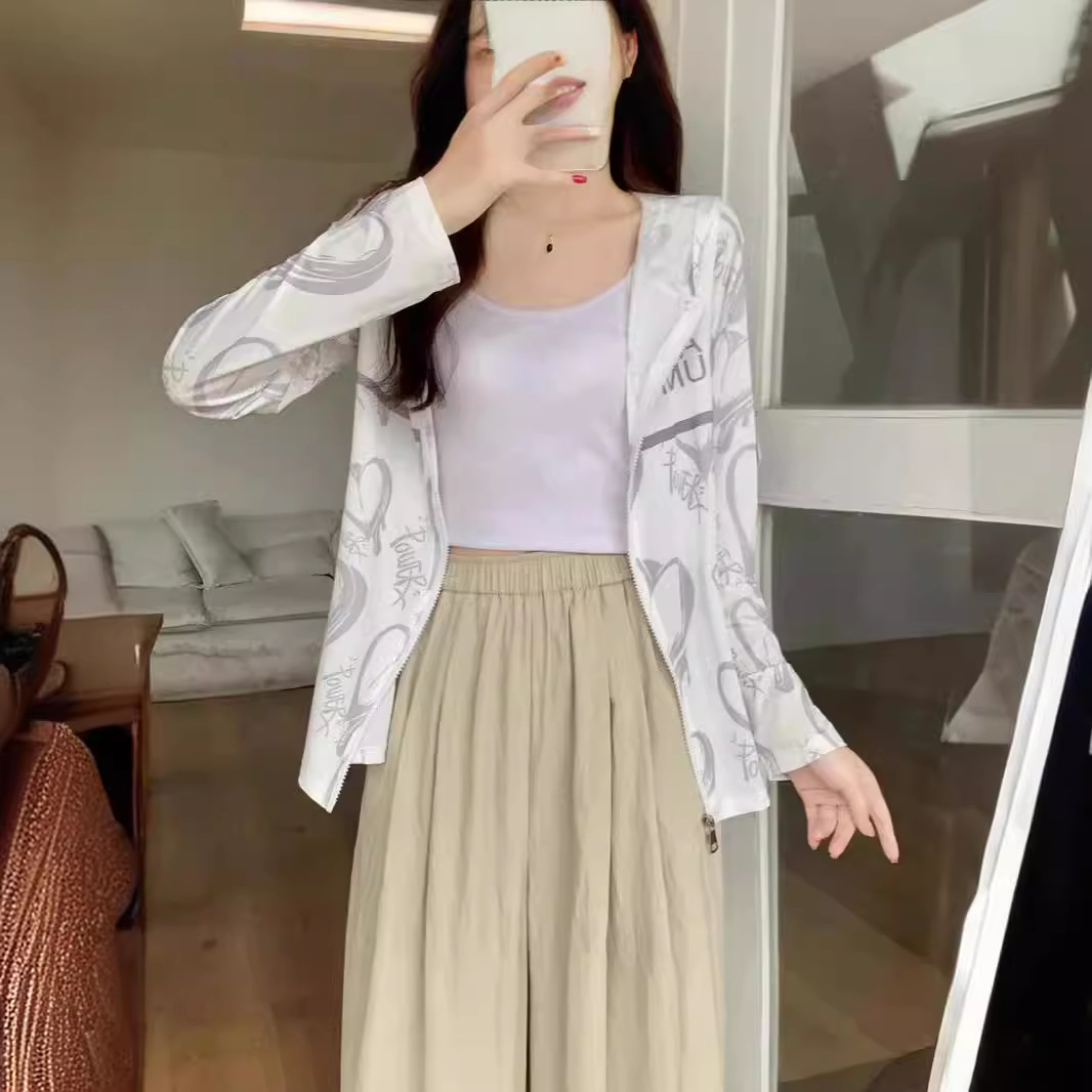 الكورية نمط الحرير الجليد ملابس واقية من الشمس المرأة المضادة للأشعة فوق البنفسجية الصيف مميزة فضفاضة رقيقة عادية في الهواء الطلق قميص المرأة 2024 نمط جديد
