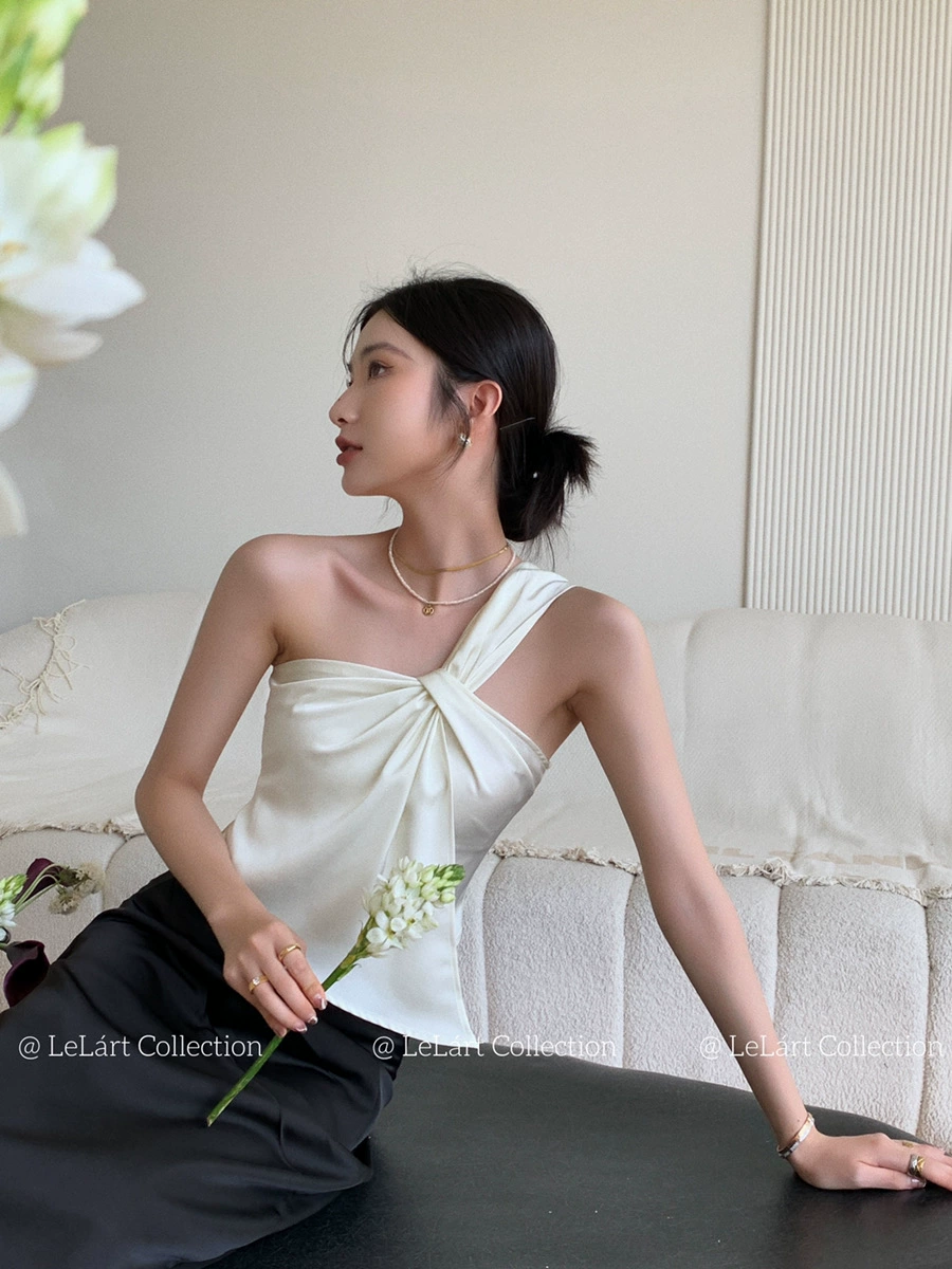 LE الأصلي الكتف المائل بلون مزاجه قميص قصير الرقبة الرسن