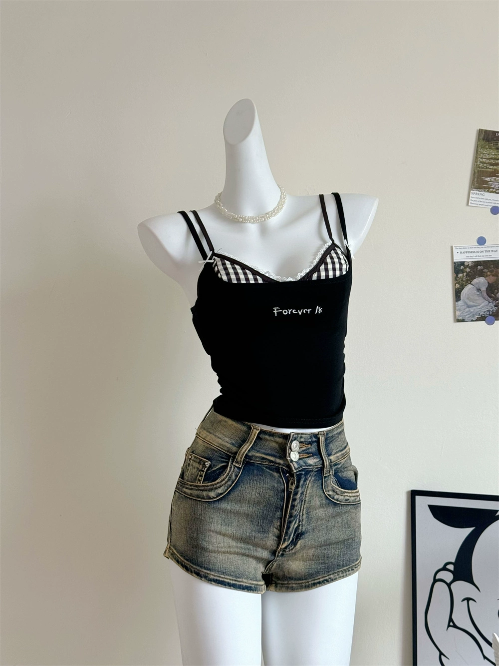 مجموعة من قطعتين من فستان Real Shot الربيعي برقبة على شكل حرف V وأربطة علوية خارجية من جلد البولي يوريثان