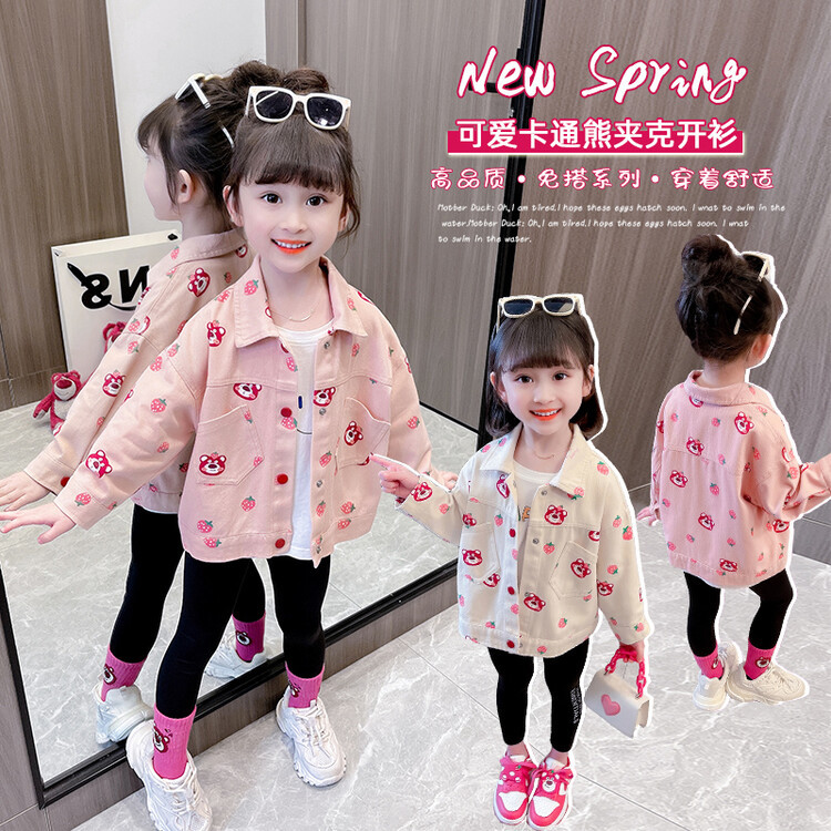 الربيع فتاة صغيرة الفراولة الدب معطف الدنيم P49