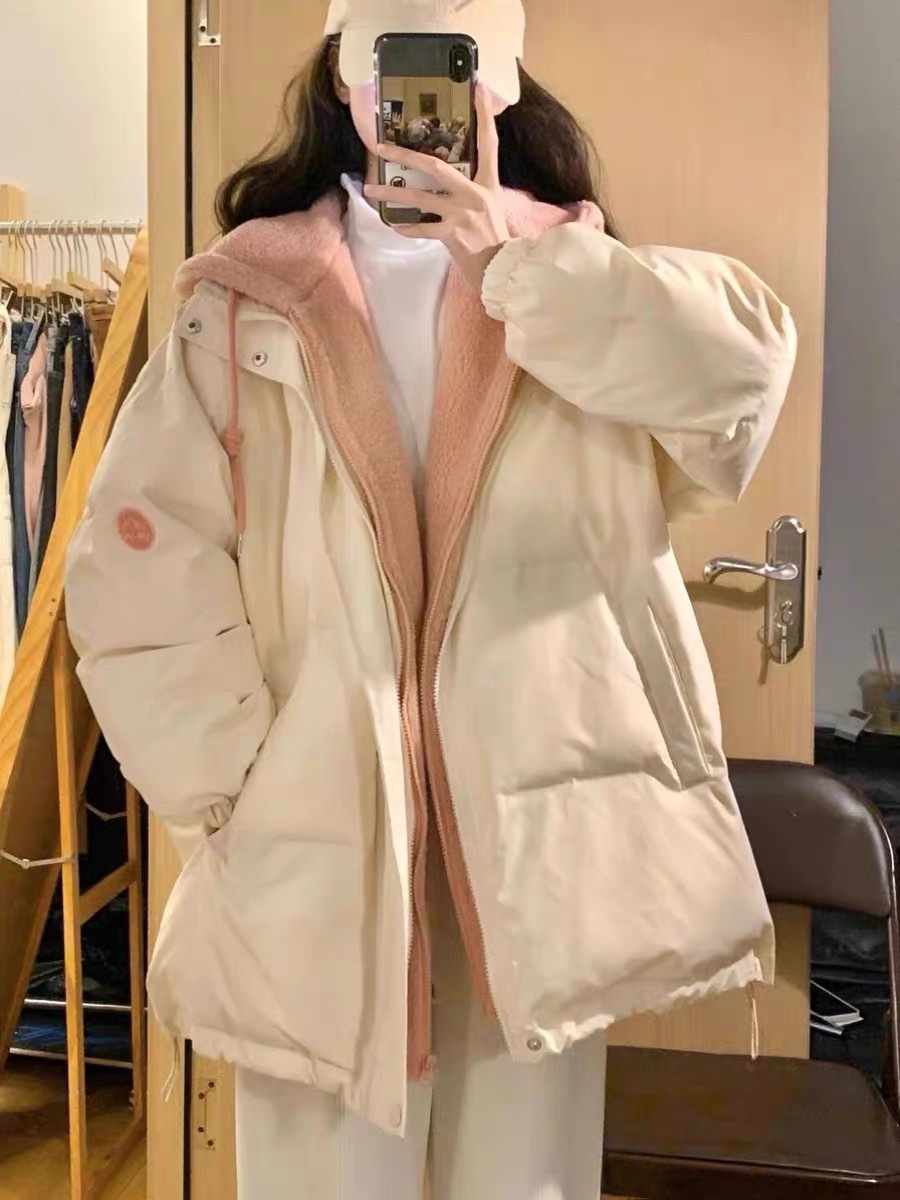 سترة نسائية لشتاء 2023 جديدة فضفاضة بتصميم جامعي على طراز جامعي معطف سميك مبطن بالقطن للنساء