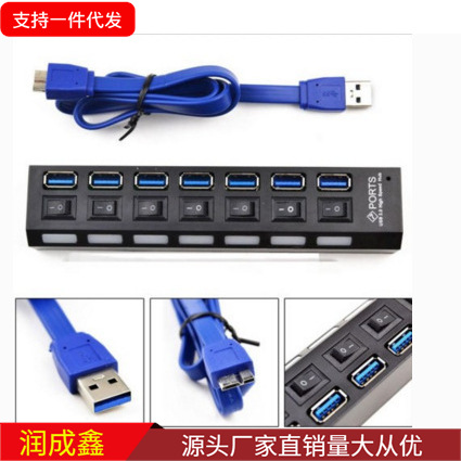 مقسم USB3.0HUB ذو 7 منافذ 3.0HUB 3.0 مع إصدار سرعة مقسم الكمبيوتر لمحور التبديل