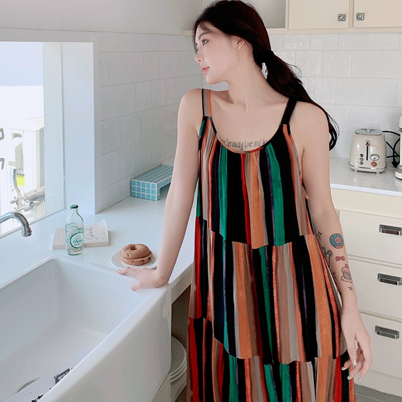 2024 جديد القطن والحرير تنورة نائمة المرأة الصيف مثير القلصات الطويلة تنورة من القطن الحرير بيجاما الجو بالإضافة إلى لونغ بيتش الطويل