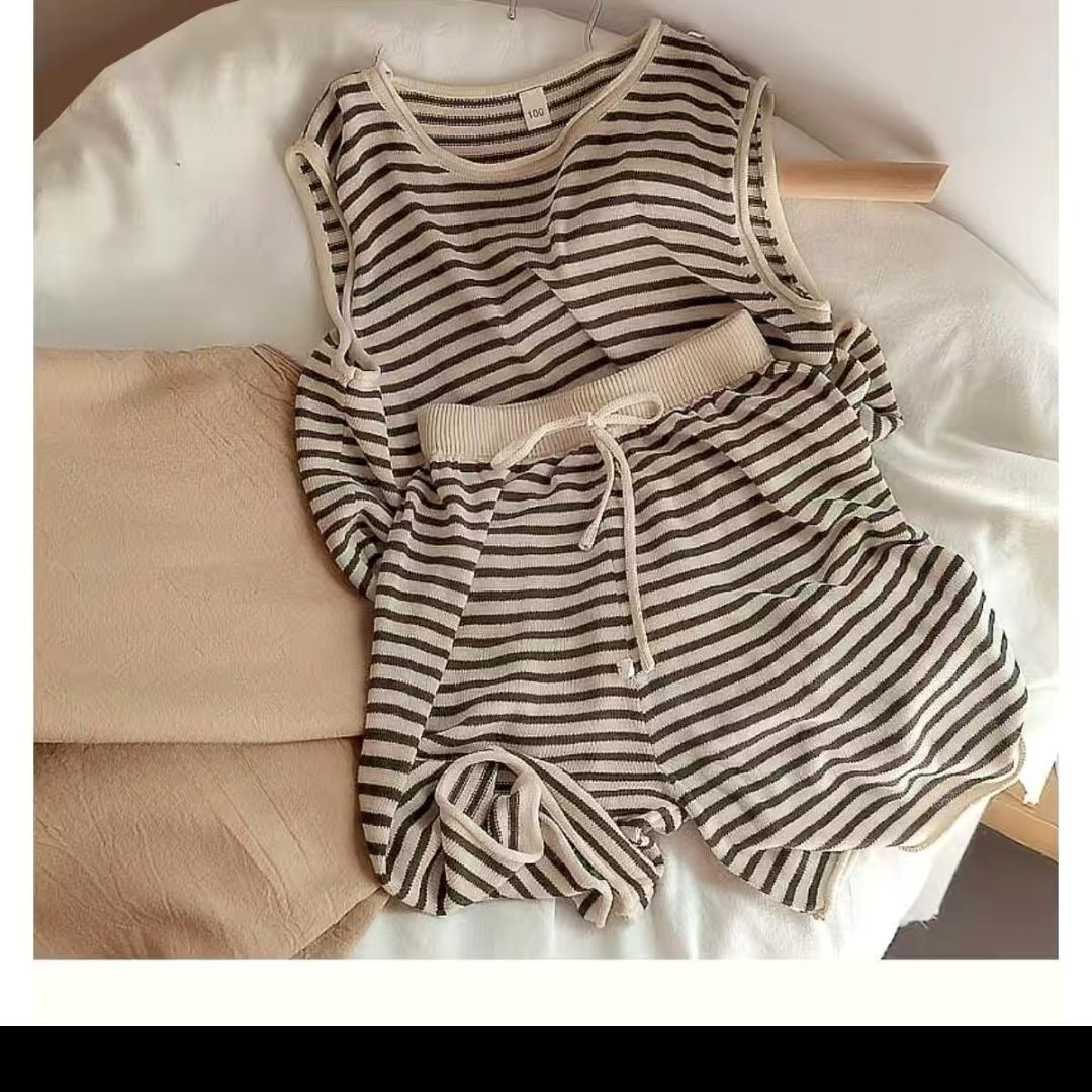 الجليد الحرير سترة بلا أكمام 2024 الرجال رداء غير رسمية رقيقة قطعتين الفتيات النمط الغربي محبوك مخطط السراويل للصيف