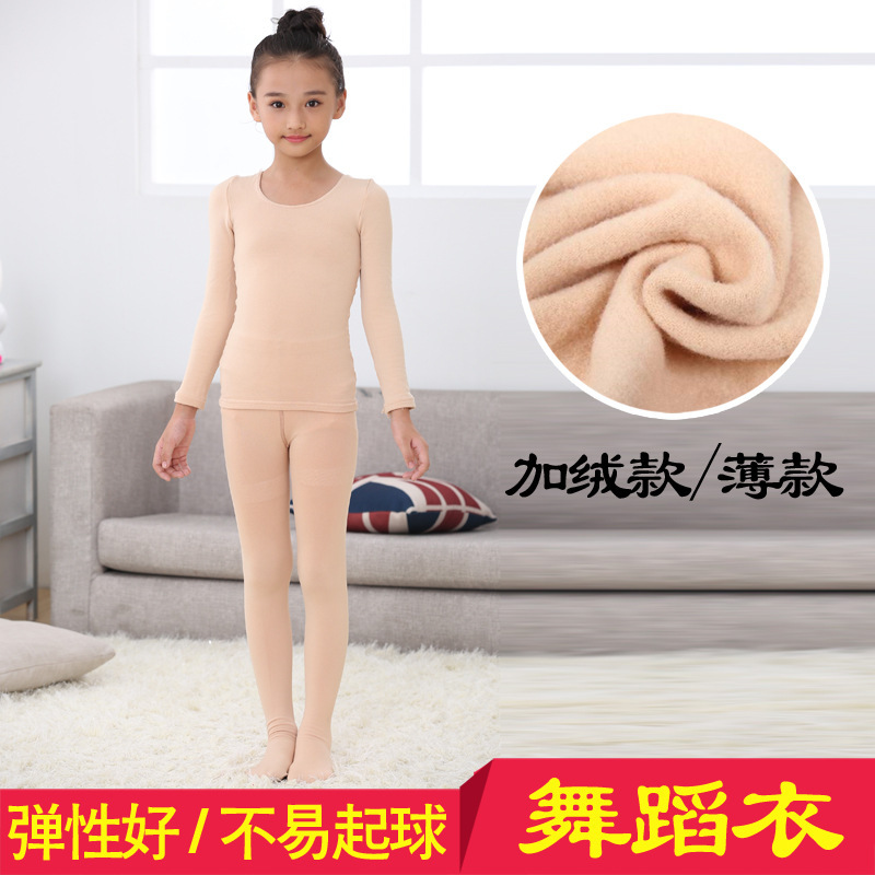 قميص قاع للرقص للأطفال للخريف والشتاء يُباع بالجملة من المصنع، قميص سفلي مبطن بالصوف عالي المرونة بلون اللحم، ملابس أداء للأطفال في رأس السنة الجديدة