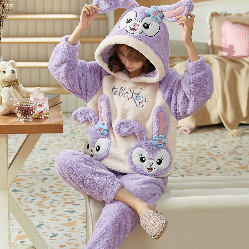 بيجامة مخملية مرجانية للنساء للخريف والشتاء، مجموعة ملابس منزلية جديدة من المخمل السميك من هيلوكيتي الكرتونية