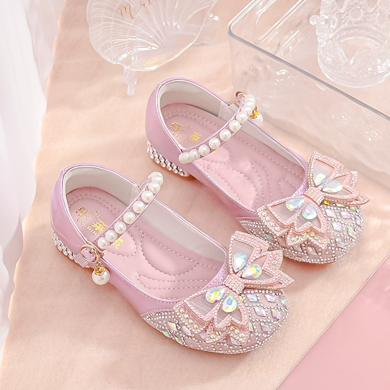 أحذية الأميرة اللامعة ذات الراين الوردي الحلو مع القوس