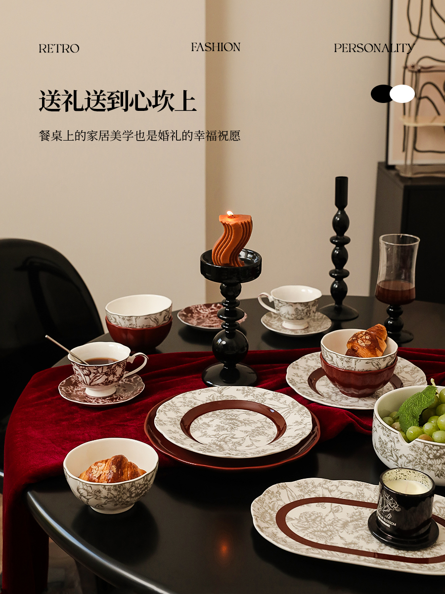 Q5ZR للعروسين مجموعة أدوات المائدة هدية الزفاف للعروسين هدية صندوق أطباق حمراء مجموعة أدوات المائدة 2023 جديد