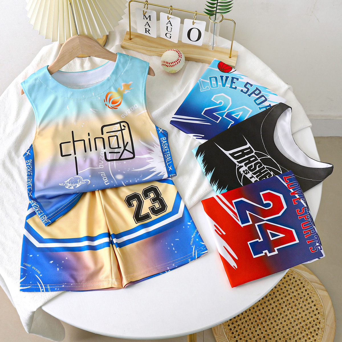 بدلة كرة سلة متدرجة للأطفال لعام 2024 سترة صيفية كبيرة للأطفال للرجال والنساء سترة رياضية فضفاضة للصيف للبيع بالجملة