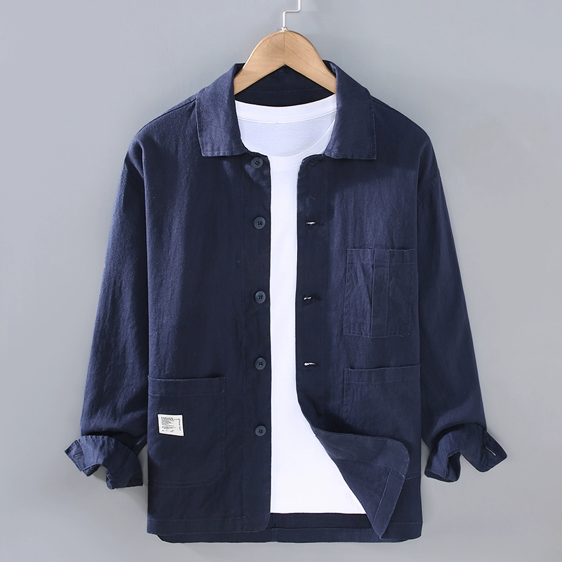 الكتان النقي الأكمام الطويلة قميص السترة الرجعية ذات الحجم الكبير
