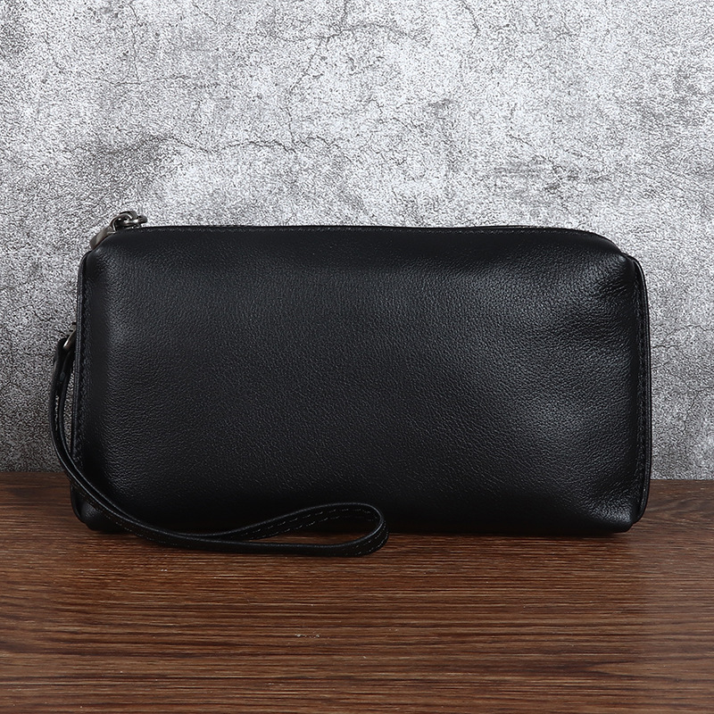 حقيبة يد من الجلد الطبيعي للرجال، حقيبة يد بسيطة محمولة من الطبقة الأولى من جلد البقر، محفظة طويلة، حقيبة هاتف كاجوال من الجلد الناعم