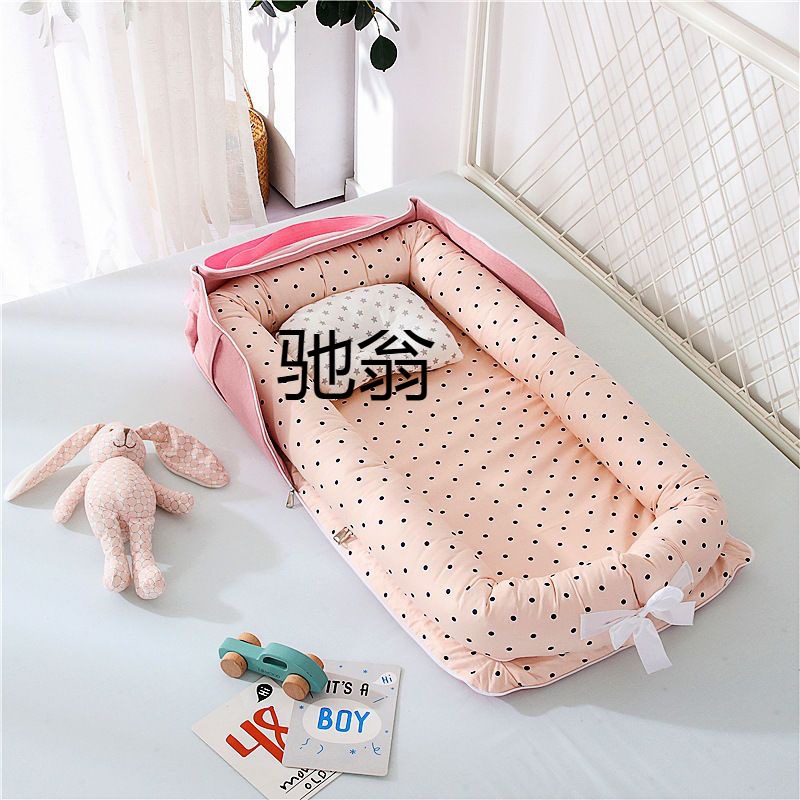 سرير محمول أيضًا، تخزين خلفي في منتصف السرير، حماية عازلة، قابلة للإزالة والغسل، وسادة متنقلة لأمتعة الأطفال من القطن