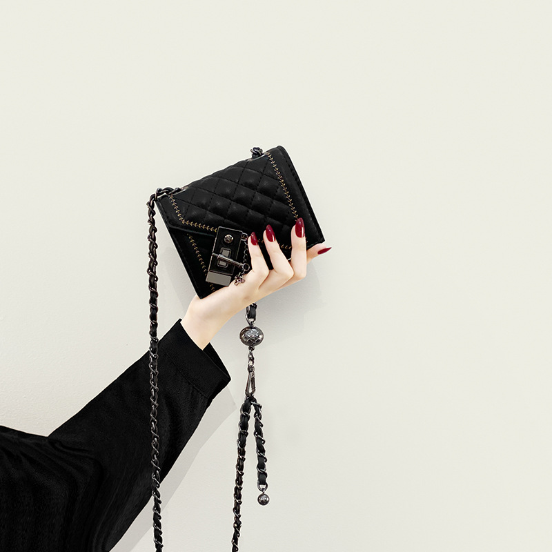 حقيبة صغيرة سوداء راقية للنساء 2023 موضة جديدة ريترو كروسبودي المعين سلسلة هواتف محمولة حقيبة مربعة صغيرة صغيرة