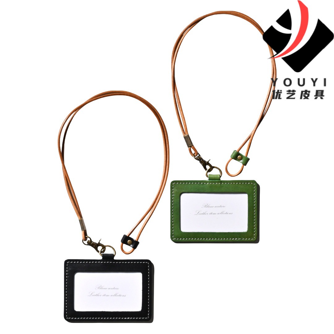 مجموعة بطاقات جلدية أصلية للرجال جديدة ومبتكرة، مجموعة بطاقات تعريف بسيطة مع لوحة معرف العمل للتحكم في الوصول إلى الحبل للنساء