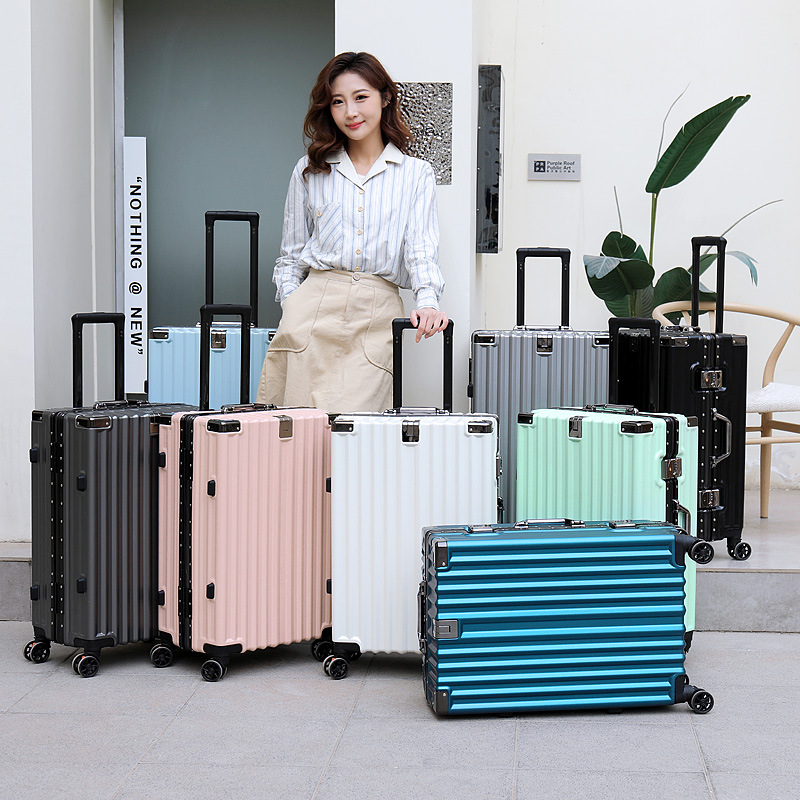 حقيبة تروللي بعجلات عالية الجودة، إطار من سبائك الألومنيوم القوي، حقيبة ذات سعة كبيرة، صندوق كلمة مرور عالمي لعجلة الطالب